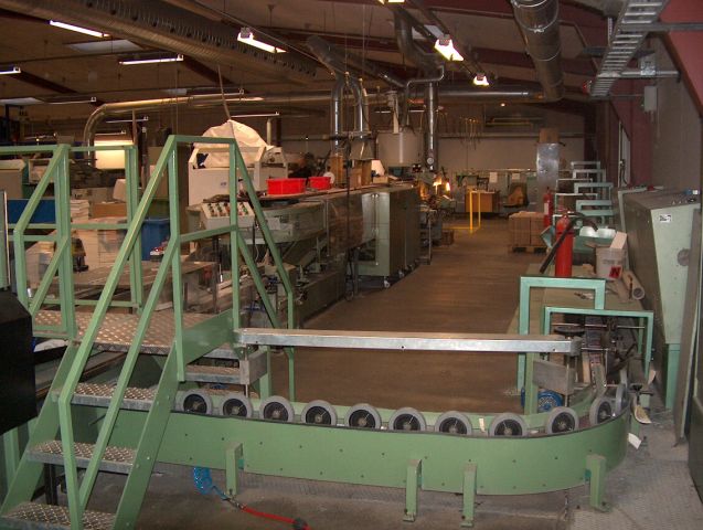 Description: <> 30x Clamps <> 38x Gatherer (291) <> 2. Press <> Gauzing station <> Hotmelt + Side gluing <> Cold + Side gluing <> Premelter <> Stacker <> Box delivery