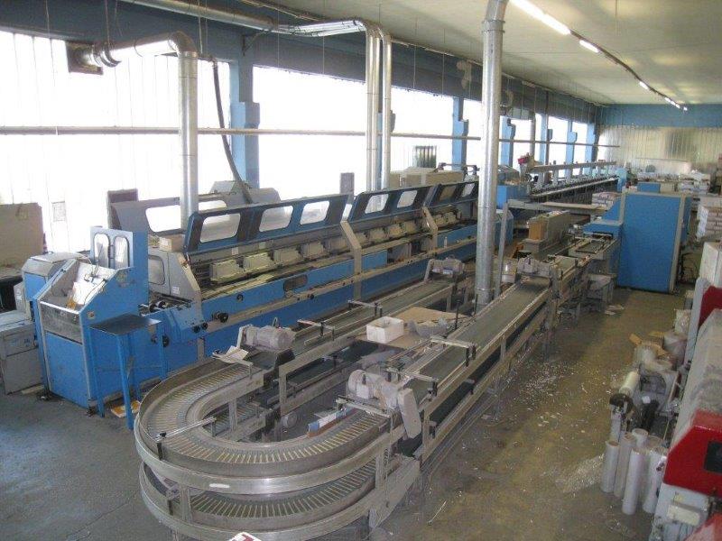 Description: <> 27x Clamps 3009/24" <> 2x Gluing premelter bases <> 2x Cover pressing and lay down delivery <> 21x Stations gatherer 3691 ASAC and ASIR II <> PUR gluing <> Gauzing station <> Premelter <> Hotmelt back and side gluing <> Sheet escape detecteur <> 40 m. conveyor <> MERIT S tree knife trimmer <> Stacker CB 16